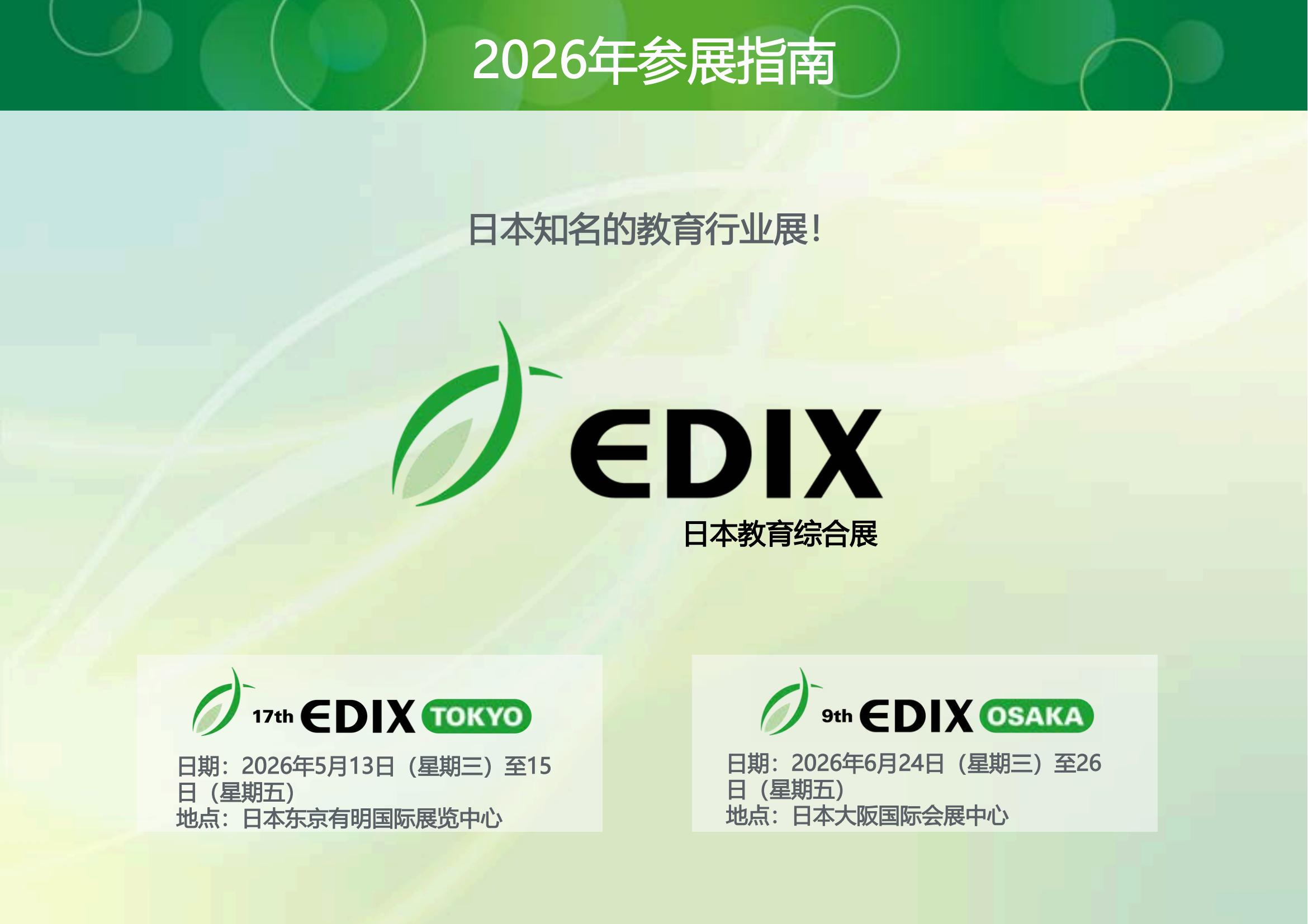 EDIX TOKYO 東京展EDIX 2026 參展指南EDIX 往屆現場聯系方式聯系人:胡輝手機:180 175 99939(同微信)郵箱:2150438974@qq.comEND